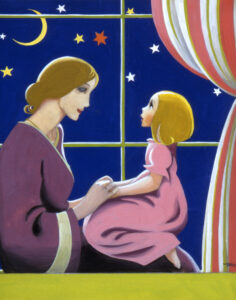 Martta Wendelin, Prinsessa Ruususen näytelmää katsomassa, tussi ja peiteväri 1946, kuvitus kirjaan Sadun ja toden mailta